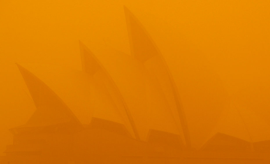 9月23日,包括悉尼在內(nèi)的澳大利亞?wèn)|部地區(qū)出現(xiàn)沙塵暴天氣,當(dāng)?shù)亟煌ㄒ虼耸艿接绊憽?lái)源:中國(guó)新聞網(wǎng)