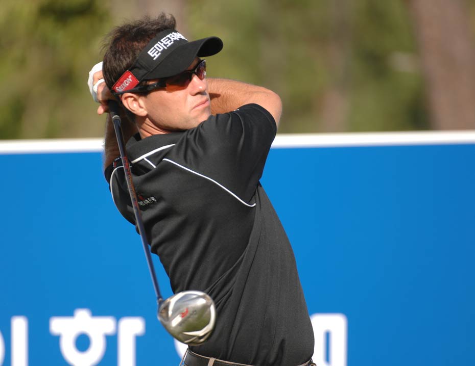 中新網(wǎng)9月24日電 2009“韓國KEB銀行”中韓職業(yè)高爾夫球巡回賽韓國站于今天在韓國OSTAR高爾夫球俱樂部正式開桿,共有133名球員將進行為期4天的角逐,其中有47名球員代表中國參賽,包含7名中國高爾夫球業(yè)余國家隊選手和3名韓籍球員。冠軍將獲得80,000,000韓幣和一座冠軍獎杯。圖為選手們上陣第一天揮桿開打的場面。