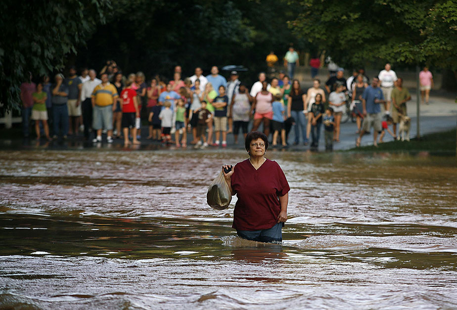 22日,洪水襲擊美國(guó)喬治亞洲,一位婦女為了趕去工作,毫不猶豫地趟過被洪水淹沒的街道。圖片來源:中國(guó)新聞網(wǎng)