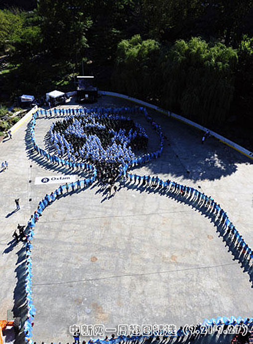 9月20日,在美國(guó)紐約中央公園,志愿者們聚集在一起用身體組成地球困在沙漏里,組織者希望通過(guò)這項(xiàng)活動(dòng)喚起人們對(duì)全球氣候變化的關(guān)注。圖片來(lái)源:中國(guó)新聞網(wǎng)