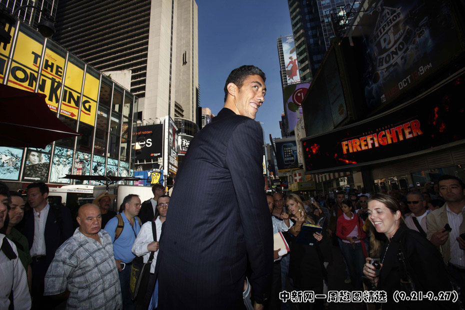 9月21日,身高2.465米的土耳其人柯森在美國紐約拿到了“世界第一高人”的吉尼斯世界紀錄證書。圖片來源:中國新聞網(wǎng)