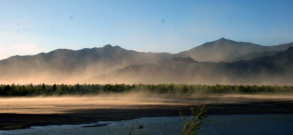 風(fēng)沙揚(yáng)起,雅魯藏布江一片壯闊。