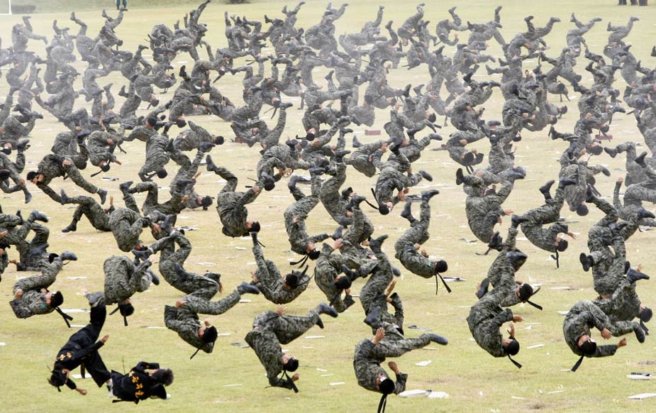 9月29日,韓國軍隊舉行建軍61周年慶典彩排活動。今年10月1日韓國將迎來建軍61周年。