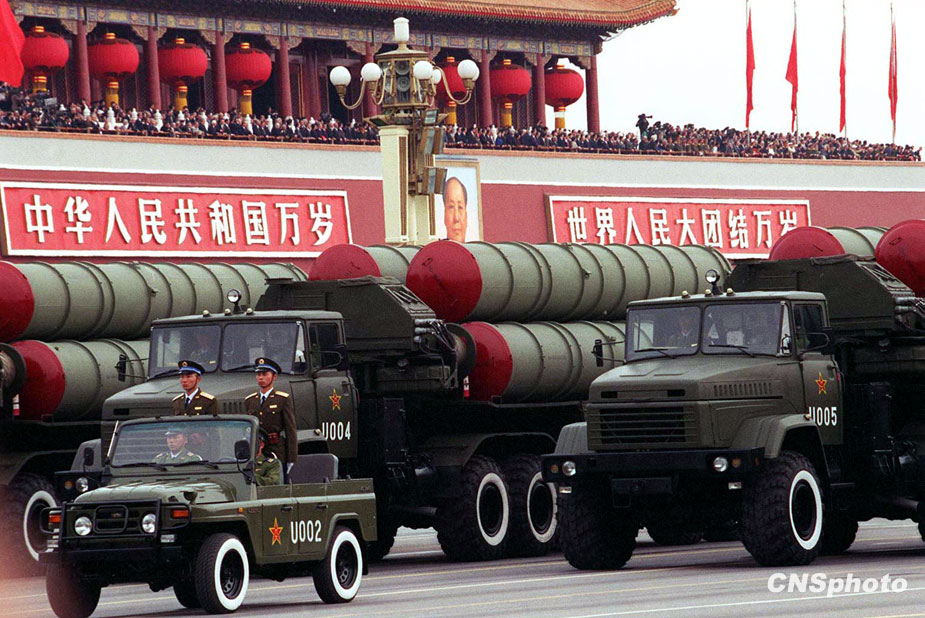 圖為空軍的中遠程地對空導彈出現(xiàn)在1999年國慶閱兵行列中。中新社發(fā) 滿會喬 攝