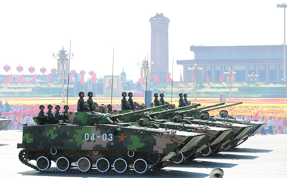 2009年10月1日,首都各界慶祝中華人民共和國成立60周年大會在北京舉行。這是履帶步戰(zhàn)車方隊通過天安門廣場。(cfp)