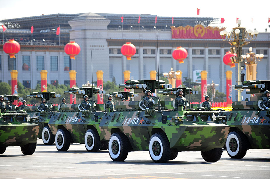 2009年10月1日,中華人民共和國(guó)成立60周年慶祝大會(huì)在北京天安門(mén)廣場(chǎng)舉行。圖為反坦克導(dǎo)彈方隊(duì)。