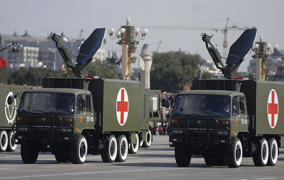10月1日,首都各界慶祝中華人民共和國成立60周年大會(huì)在北京舉行。這是后勤裝備方隊(duì)接受檢閱。(麥田/CFP)