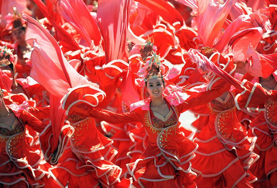 圖為大型水袖舞“祝福祖國(guó)”。李尕 攝 圖片來(lái)源:新華網(wǎng)