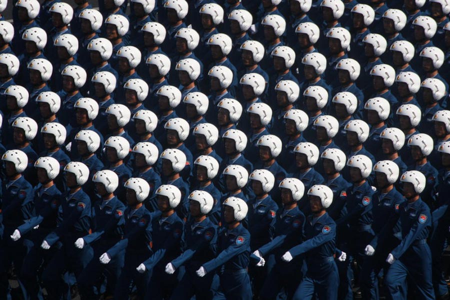 2009年10月1日,北京,首都各界慶祝中華人民共和國成立60周年大會在北京舉行。大會結束后舉行了盛大的閱兵式。圖為接受檢閱的徒步方隊。 史家民/CFP