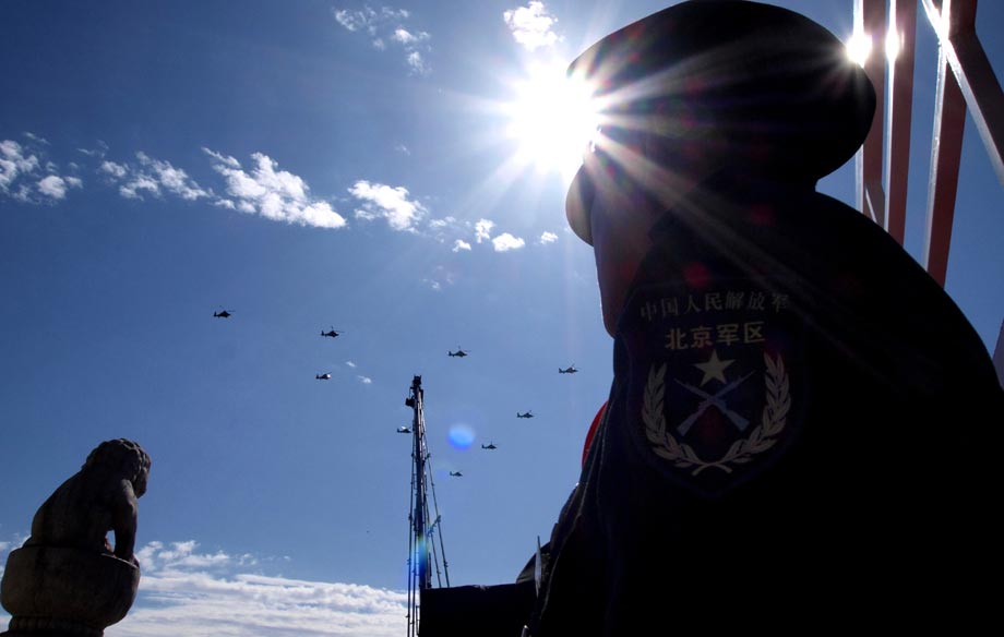 2009年10月1日,首都各界慶祝中華人民共和國(guó)成立60周年大會(huì)在北京舉行?罩蟹疥(duì)在北京上空駛過(guò)。