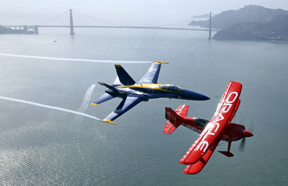 2009年10月8日,美軍飛機(jī)在舊金山灣上空進(jìn)行飛行演練。一年一度的舊金山艦隊(duì)周將于10月10日開(kāi)幕,屆時(shí)會(huì)有船艦游行和飛行表演等活動(dòng)。 來(lái)源:中國(guó)新聞網(wǎng)