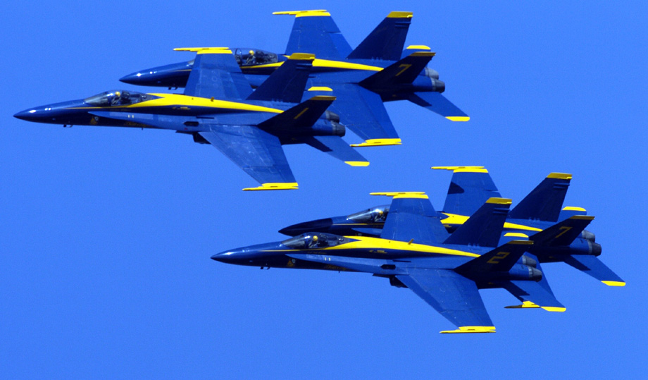 2009年10月8日,美軍飛機在舊金山灣上空進(jìn)行飛行演練。一年一度的舊金山艦隊周將于10月10日開幕,屆時會有船艦游行和飛行表演等活動。 來源:中國新聞網(wǎng)