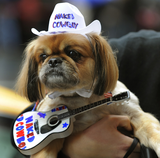 10月18日,在美國(guó)紐約時(shí)報(bào)廣場(chǎng),眾多小狗在此參加第5屆年度狗狗化妝舞會(huì)表演。主辦方稱,這一活動(dòng)的目的在于喚起人們對(duì)無(wú)家可歸和遭遺棄動(dòng)物的關(guān)注。
