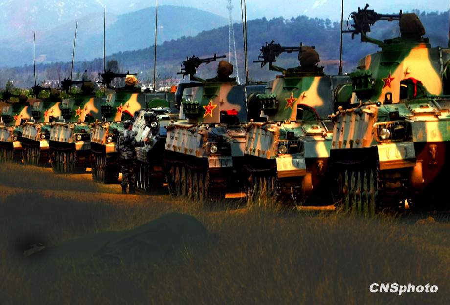 解放軍濟(jì)南軍區(qū)“前鋒-2009A”軍事演習(xí),將于10月21日在某合同戰(zhàn)術(shù)訓(xùn)練基地舉行,參加演習(xí)部隊(duì)10月20日組織戰(zhàn)前動員。這次演習(xí)主要是由兵力兵器數(shù)量規(guī)模向信息火力效能聚優(yōu)轉(zhuǎn)變、指揮的重心由主攻方向上的重點(diǎn)突破向作戰(zhàn)關(guān)節(jié)要害的體系毀癱轉(zhuǎn)變、火力的運(yùn)用由概略粗放決策向科學(xué)精細(xì)籌劃轉(zhuǎn)變、協(xié)同的重點(diǎn)由地面步坦行動向陸空火力協(xié)調(diào)轉(zhuǎn)變、行動的控制由時(shí)間位置推進(jìn)量向效果態(tài)勢達(dá)成度轉(zhuǎn)變、作戰(zhàn)的目的由殲敵奪地向控要制權(quán)轉(zhuǎn)變。 中新社發(fā) 宋吉河 攝