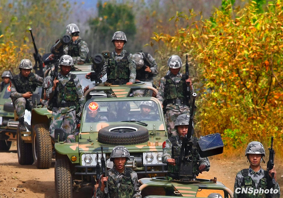 解放軍濟南軍區(qū)“前鋒-2009A”軍事演習,將于10月21日在某合同戰(zhàn)術訓練基地舉行,圖為即將參加演習的空降兵部隊10月20日在進行針對性訓練。這次演習主要是由兵力兵器數量規(guī)模向信息火力效能聚優(yōu)轉變、指揮的重心由主攻方向上的重點突破向作戰(zhàn)關節(jié)要害的體系毀癱轉變、火力的運用由概略粗放決策向科學精細籌劃轉變、協(xié)同的重點由地面步坦行動向陸空火力協(xié)調轉變、行動的控制由時間位置推進量向效果態(tài)勢達成度轉變、作戰(zhàn)的目的由殲敵奪地向控要制權轉變。 中新社發(fā) 宋吉河 攝