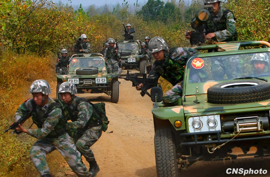 解放軍濟(jì)南軍區(qū)“前鋒-2009A”軍事演習(xí),將于10月21日在某合同戰(zhàn)術(shù)訓(xùn)練基地舉行,圖為即將參加演習(xí)的空降兵部隊(duì)10月20日在進(jìn)行針對(duì)性訓(xùn)練。這次演習(xí)主要是由兵力兵器數(shù)量規(guī)模向信息火力效能聚優(yōu)轉(zhuǎn)變、指揮的重心由主攻方向上的重點(diǎn)突破向作戰(zhàn)關(guān)節(jié)要害的體系毀癱轉(zhuǎn)變、火力的運(yùn)用由概略粗放決策向科學(xué)精細(xì)籌劃轉(zhuǎn)變、協(xié)同的重點(diǎn)由地面步坦行動(dòng)向陸空火力協(xié)調(diào)轉(zhuǎn)變、行動(dòng)的控制由時(shí)間位置推進(jìn)量向效果態(tài)勢(shì)達(dá)成度轉(zhuǎn)變、作戰(zhàn)的目的由殲敵奪地向控要制權(quán)轉(zhuǎn)變。 中新社發(fā) 宋吉河 攝