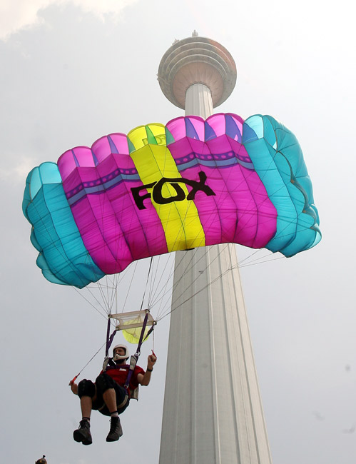 10月23日,馬來西亞吉隆坡電訊塔舉辦2009馬來西亞吉隆坡塔國(guó)際跳傘節(jié)。23日至25日將有約80名跳傘好手會(huì)在高達(dá)421米的吉隆坡塔上表演跳傘。