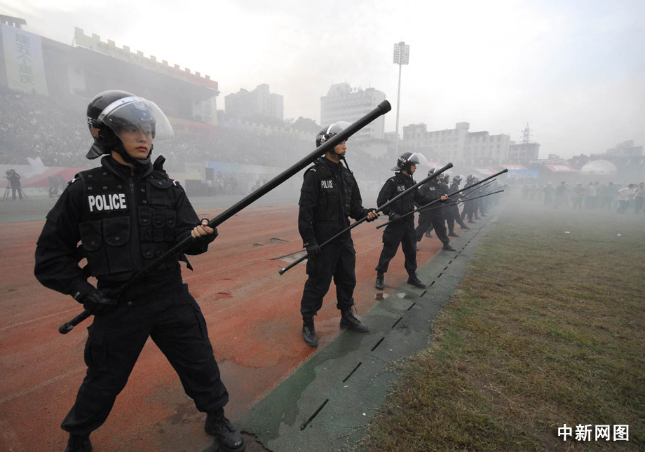 23日,推進(jìn)“平安重慶”建設(shè)突發(fā)事件應(yīng)急演練在該市渝中區(qū)大田灣體育場舉行,重慶各警種突精銳力量重裝登場,將各類事件一一化解。