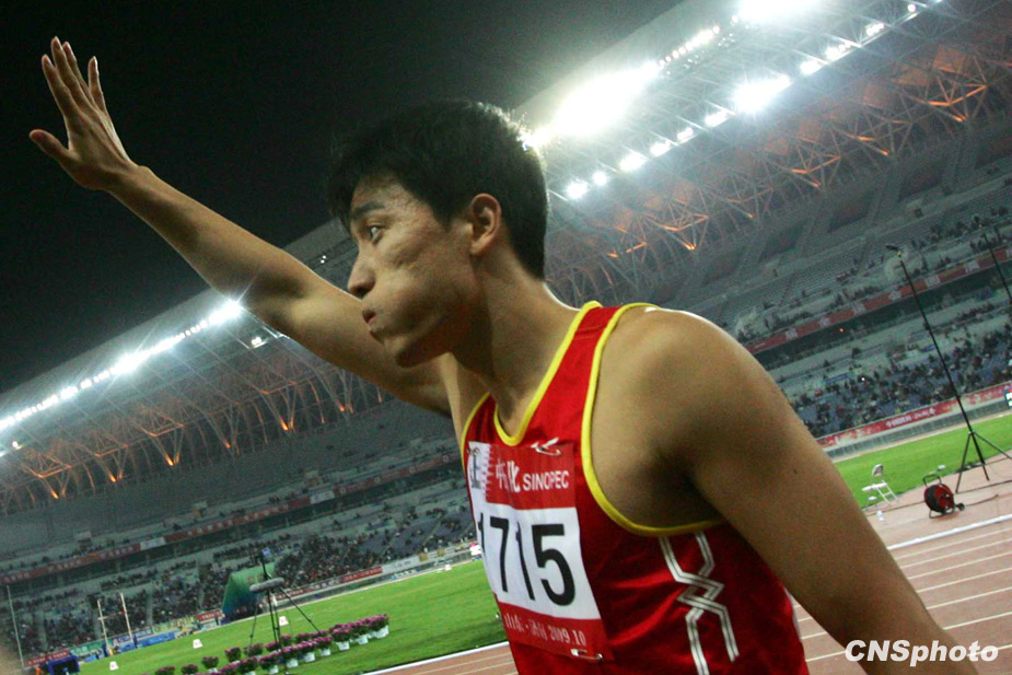 10月24日晚,全運會110米欄預賽在濟南奧體中心舉行,“飛人”劉翔以13秒75成績輕松晉級決賽。來源:中國新聞網