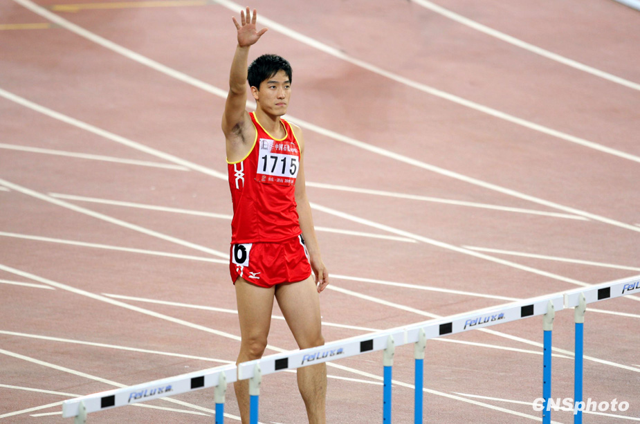 10月24日晚,全運(yùn)會(huì)110米欄預(yù)賽在濟(jì)南奧體中心舉行,“飛人”劉翔以13秒75成績輕松晉級(jí)決賽。來源:中國新聞網(wǎng)