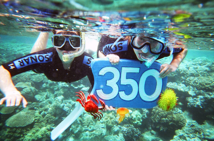 2009年10月24日,當(dāng)日是350全球應(yīng)對(duì)氣候變化行動(dòng)日,世界各地的民眾紛紛用自己的方式來表示對(duì)全球氣候變化的關(guān)注和擔(dān)憂。圖為澳大利亞民眾組織活動(dòng)紀(jì)念350全球應(yīng)對(duì)氣候變化行動(dòng)日。