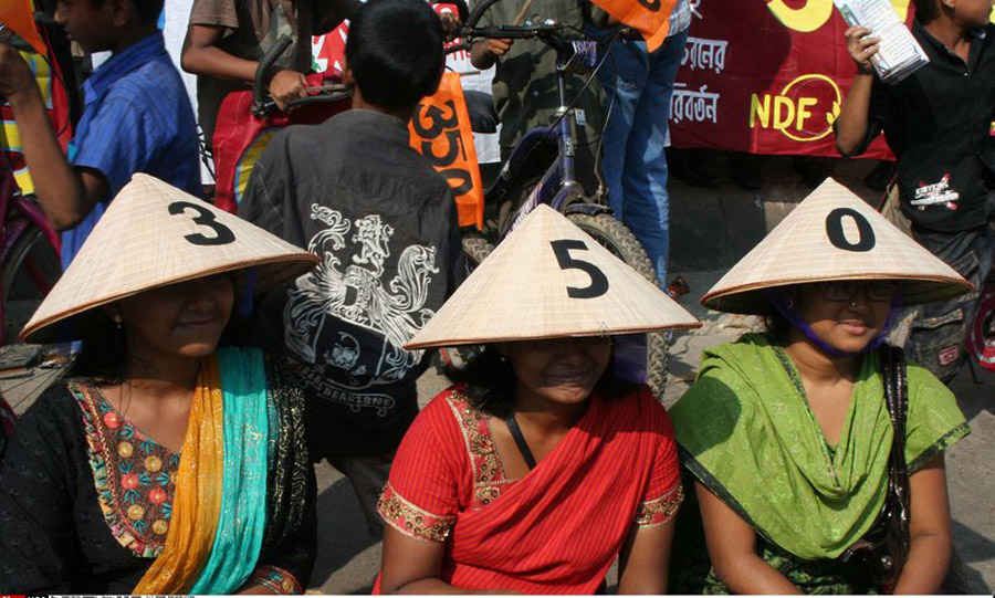 2009年10月24日,當(dāng)日是350全球應(yīng)對(duì)氣候變化行動(dòng)日,世界各地的民眾紛紛用自己的方式來(lái)表示對(duì)全球氣候變化的關(guān)注和擔(dān)憂(yōu)。圖為孟加拉民眾組織的活動(dòng)。