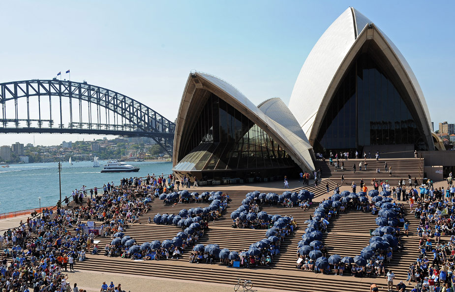 2009年10月24日,當(dāng)日是350全球應(yīng)對(duì)氣候變化行動(dòng)日,世界各地的民眾紛紛用自己的方式來表示對(duì)全球氣候變化的關(guān)注和擔(dān)憂。圖為澳大利亞民眾組織活動(dòng)。
