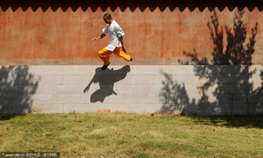 釋理亮平日時(shí)常練習(xí)飛檐走壁,他說這也是鍛煉腿部爆發(fā)力的一種方式。 林朝陽/CFP