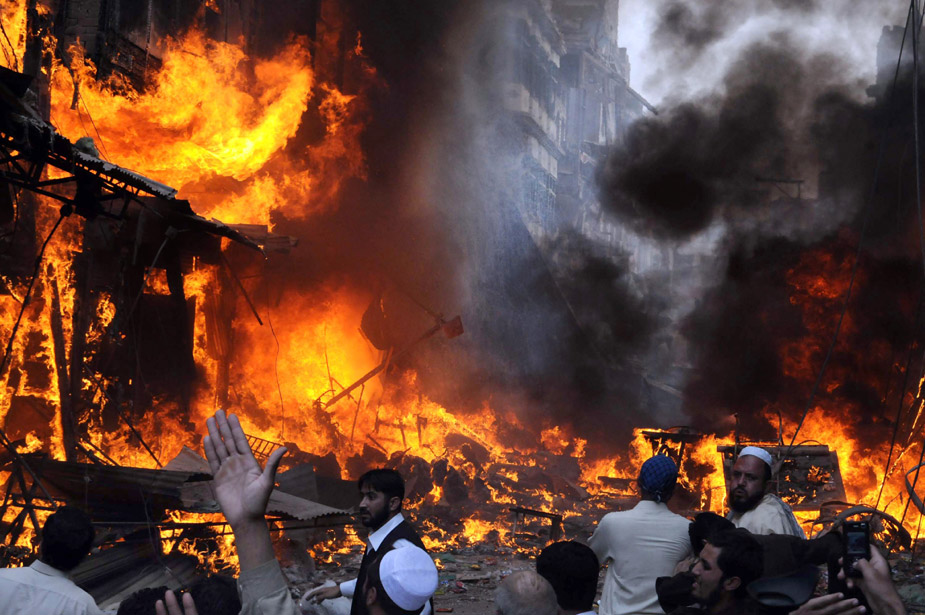 10月28日,巴基斯坦西北部城市白沙瓦一個(gè)人口密集的集市遭汽車(chē)炸彈襲擊。圖片來(lái)源:中國(guó)新聞網(wǎng)