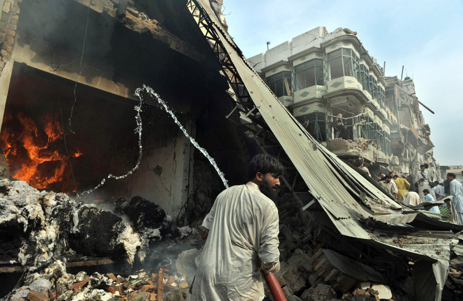 10月28日,巴基斯坦西北部城市白沙瓦一個人口密集的集市遭汽車炸彈襲擊。圖片來源:中國新聞網(wǎng)