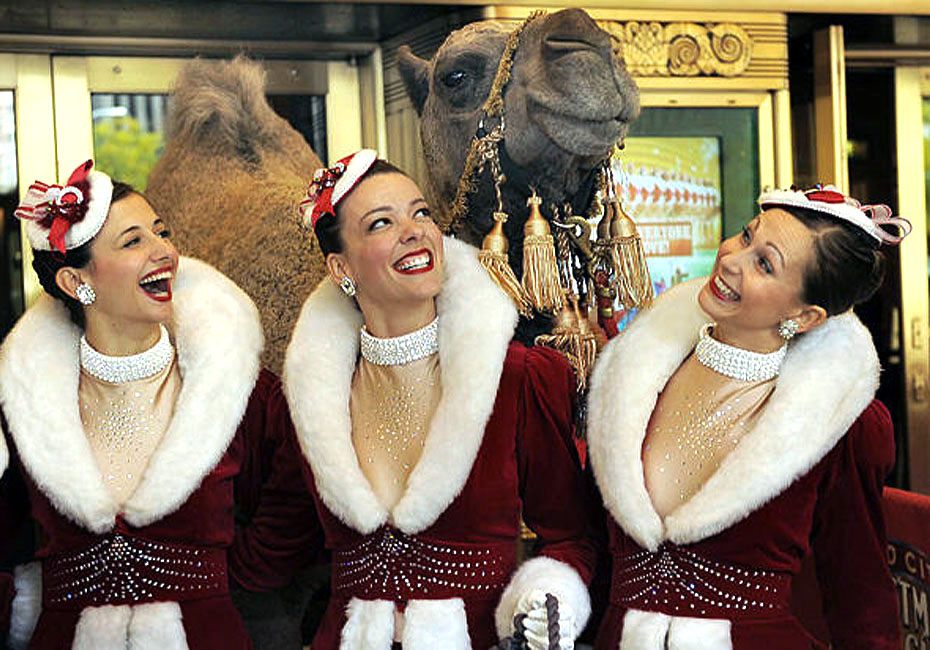 10月29日,火箭女郎舞蹈團(tuán)的姑娘們在美國紐約廣播城音樂廳與眾多動物明星合影,準(zhǔn)備在圣誕秀上亮相。圖片來源:中國新聞網(wǎng)