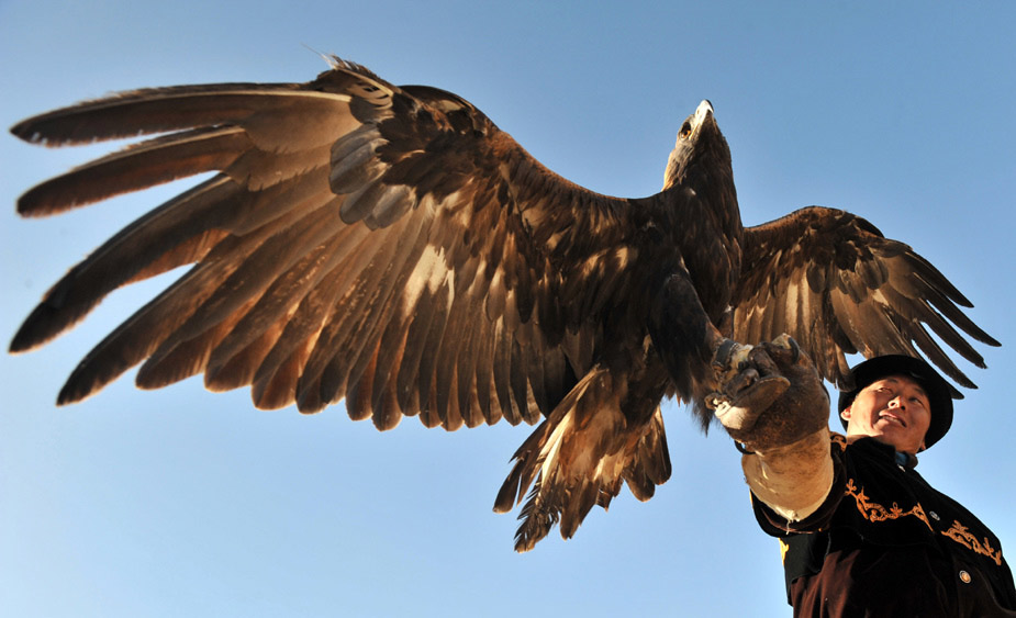 10月30日,在吉爾吉斯斯坦Bokonbayevo傳統(tǒng)的狩獵節(jié)上,一只捕獵鳥(niǎo)在追獵物。圖片來(lái)源:中國(guó)新聞網(wǎng)