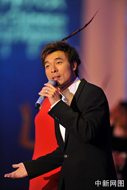 圖為許志安現(xiàn)場演唱歌曲助興。