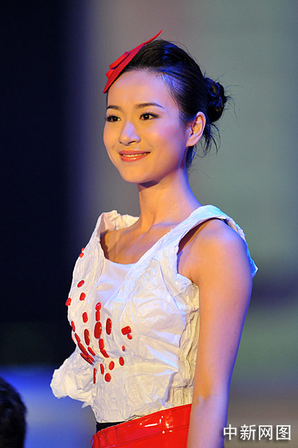 10月31日晚,“2009中華小姐環(huán)球大賽”總決賽上,12名入圍總決賽的佳麗身著各式服裝展現(xiàn)曼妙身姿,此外大賽還設(shè)計(jì)了一套“廢品服裝”呼吁環(huán)境保護(hù)。中新網(wǎng)記者 金碩 攝