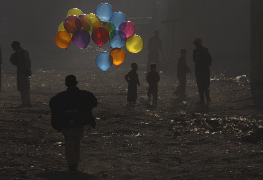 周日(25日),飽受戰(zhàn)火的阿富汗,一個(gè)男孩在首都喀布爾街頭手拿五彩氣球。 來源:中國新聞網(wǎng)