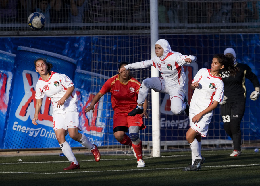 周一(26日),約旦和巴勒斯坦兩國女子足球隊(duì)進(jìn)行了一場友誼賽。 來源:中國新聞網(wǎng)