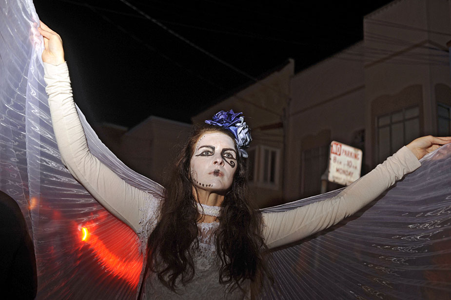 11月2日,美國(guó)舊金山居民扮成鬼怪模樣慶!巴鲮`節(jié)”!巴鲮`節(jié)”是拉美地區(qū)的傳統(tǒng)節(jié)日,類似于中國(guó)的清明節(jié)。來(lái)源:中國(guó)新聞網(wǎng)