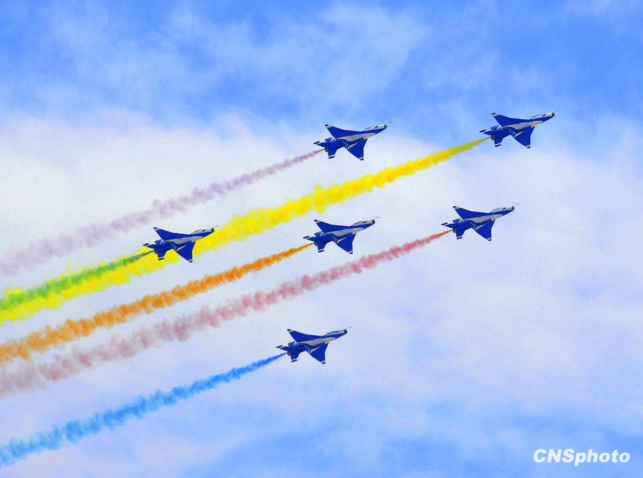 11月3日,空軍八一飛行表演隊(duì)和空軍八一跳傘隊(duì)在北京沙河機(jī)場(chǎng)舉行預(yù)演,迎接中國(guó)人民解放軍空軍建軍六十周年。