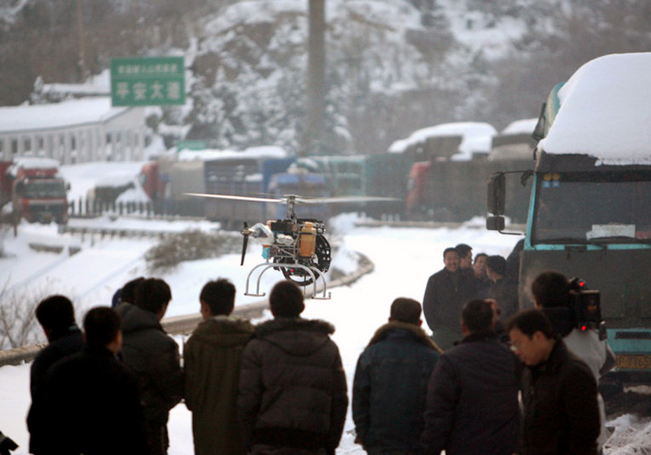 11月12日,受降雪影響,石太高速出現大堵車。圖為央視正在航拍堵車情況。崔華瑞 攝