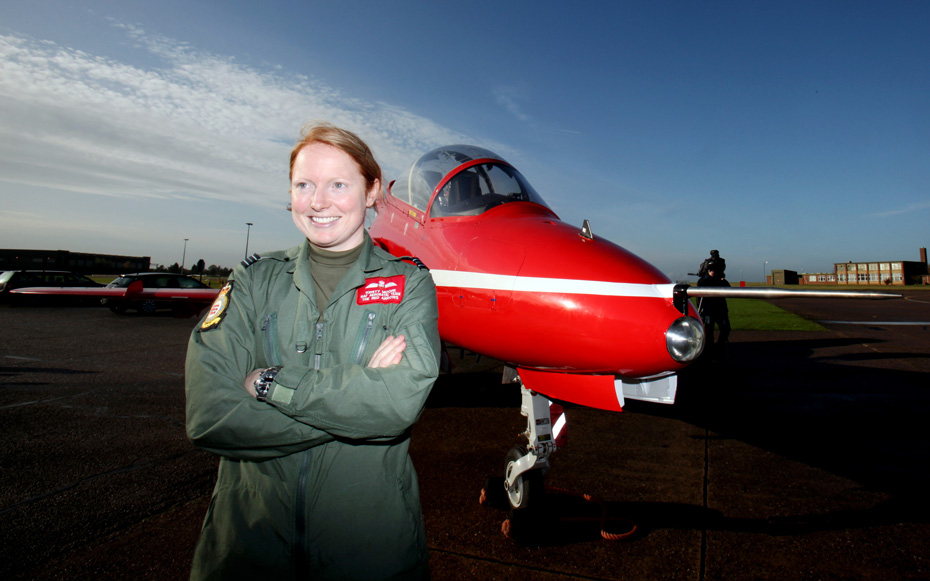 11月12日,英國(guó)紅箭特技飛行表演隊(duì)迎來(lái)了第一位女性飛行員中尉基絲·摩爾,她將與其他成員一道駕駛紅色噴氣機(jī)進(jìn)行空軍飛行表演。圖片來(lái)源:中國(guó)新聞網(wǎng)