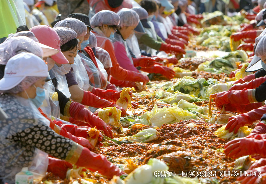 11月9日,約2700名韓國志愿者在首爾一所學(xué)校的操場上制作泡菜。>>點擊觀看詳細內(nèi)容