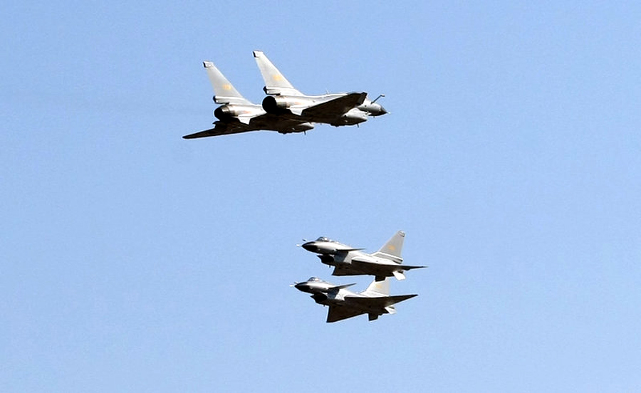 慶祝中國人民解放軍空軍成立60周年飛行表演,11月15日上午在北京沙河機(jī)場(chǎng)舉行。表演按八一飛行表演隊(duì)4架殲-10飛機(jī)表演12個(gè)動(dòng)作和6架殲-7GB飛機(jī)表演15個(gè)動(dòng)作,分四機(jī)對(duì)頭交叉、四機(jī)菱形隊(duì)大坡度盤旋、單機(jī)小速度平飛等27個(gè)動(dòng)作,其中四機(jī)對(duì)頭交叉動(dòng)作是這次表演中技術(shù)難度較大的動(dòng)作之一,這是國產(chǎn)三代飛機(jī)和國產(chǎn)二代飛機(jī)首次同場(chǎng)競(jìng)技表演。圖為殲10戰(zhàn)機(jī)編隊(duì)在進(jìn)行特技表演。王穎 攝