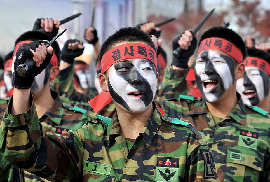 11月16日,韓國在距首爾以北30公里處舉行了由特種兵參與的反恐演習(xí)。圖片來源:中國新聞網(wǎng)