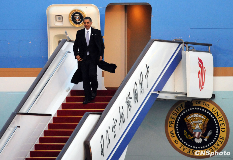 11月16日下午,美國(guó)總統(tǒng)奧巴馬乘專機(jī)從上海飛抵北京。中新社記者 廖攀 攝