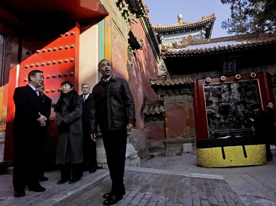 11月17日,正在中國進(jìn)行國事訪問的美國總統(tǒng)奧巴馬一行參觀北京故宮。