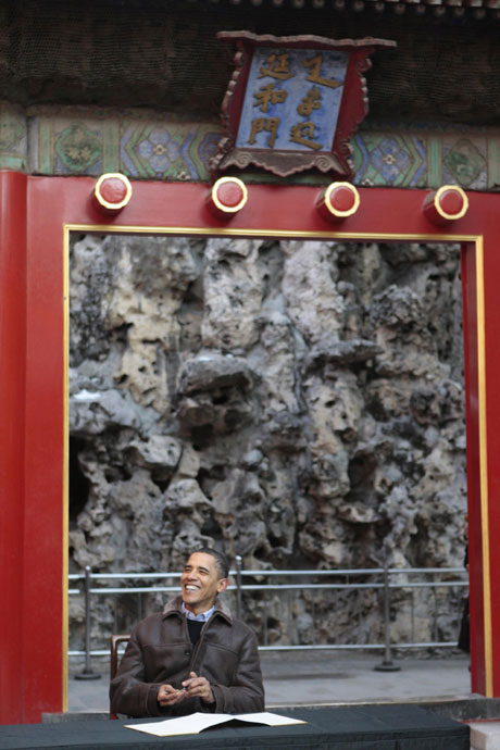 11月17日,正在中國(guó)進(jìn)行國(guó)事訪(fǎng)問(wèn)的美國(guó)總統(tǒng)奧巴馬一行參觀(guān)北京故宮。