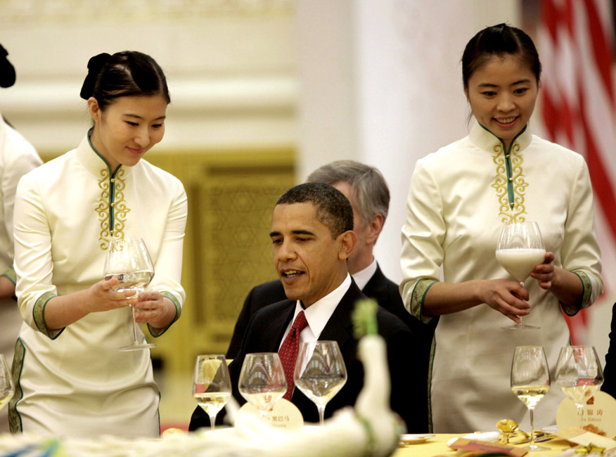 國家主席胡錦濤11月17日晚在北京人民大會(huì)舉行盛大宴會(huì),歡迎來華訪問的美國總統(tǒng)奧巴馬。