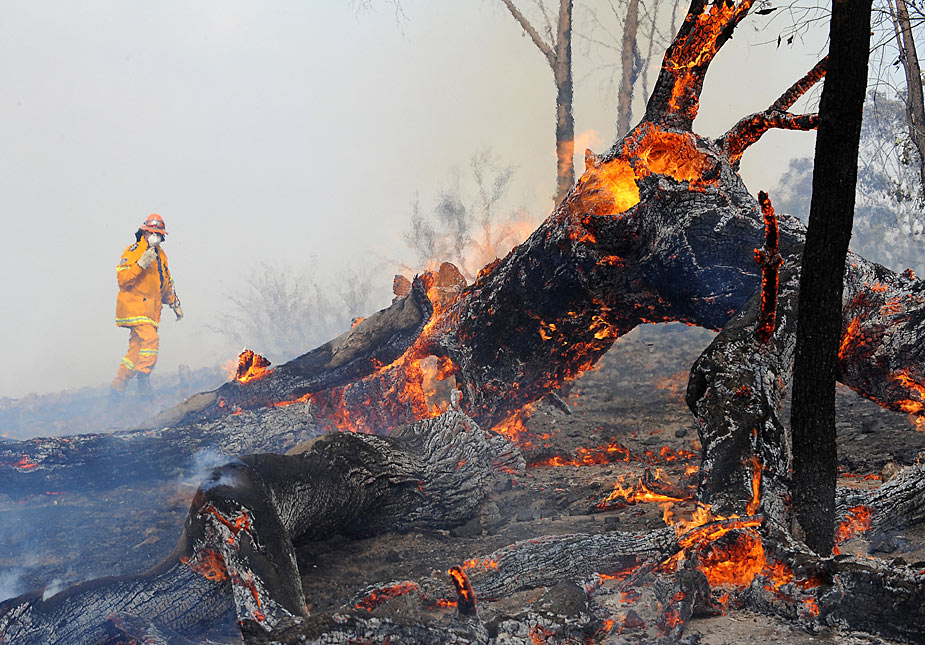 11月22日,澳大利亞東部悉尼西北部地區(qū)因高溫發(fā)生森林大火,當(dāng)?shù)鼐用癖黄瘸冯x。圖片來源:中國新聞網(wǎng)