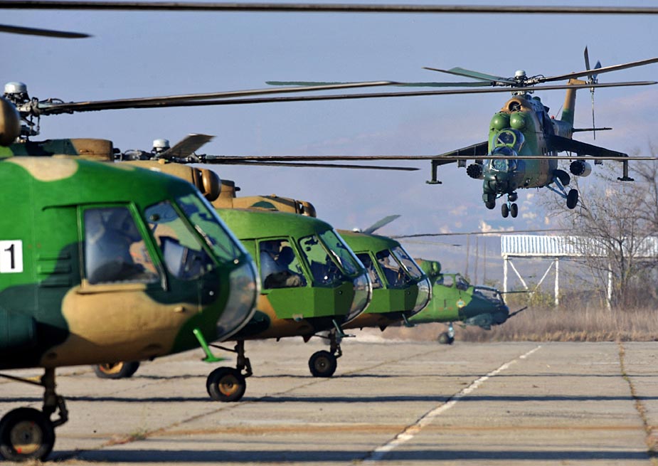 11月26日,馬其頓軍隊在馬其頓中部舉行了大規(guī)模的反恐軍演。包括MI-24型武裝直升機等多種重武器參加了這次軍事演習。圖片來源:中國新聞網(wǎng)