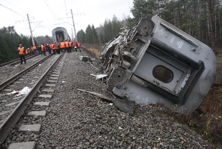 莫斯科時間27日21點34分,由莫斯科開往圣彼得堡的166次“涅瓦特快號”客運列車的幾節(jié)車廂發(fā)生脫軌事故。